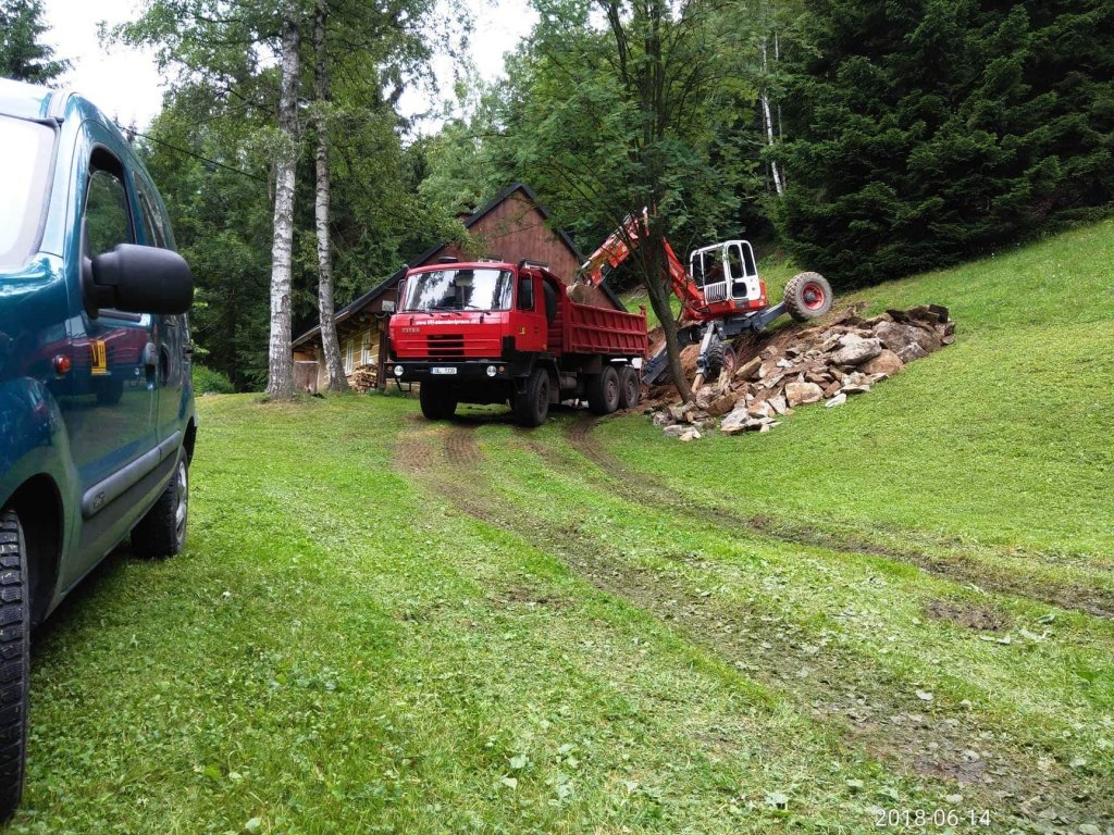 Odtěžení části stráně nad chalupou